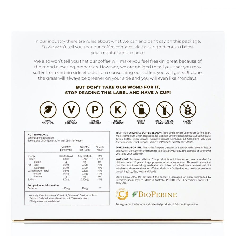 Premium instant coffee blends to help improve health, wellbeing & performance. By infusing our coffee with superfoods, you get more out of each cup! Created by Jaryd & Ash, their goal at BeforeYouSpeak is to transform the functional coffee space and provide you with caffeine, so that you can focus on getting sh*t done.